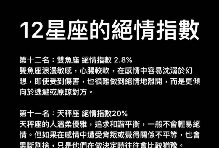 12星座的絕情指數
