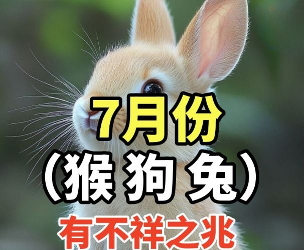 7月份(猴、狗、兔)有不祥之兆,請為他們轉走,逢兇化吉