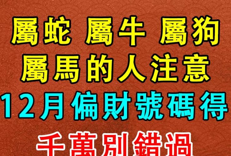 屬蛇牛狗馬的人注意:12月偏財號碼千萬別錯過!