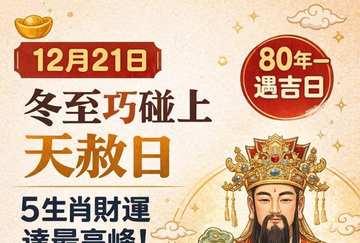 難得一見!21號『冬至碰上天赦日 』5生肖財運達到最高峰