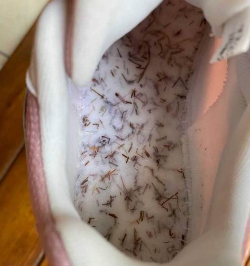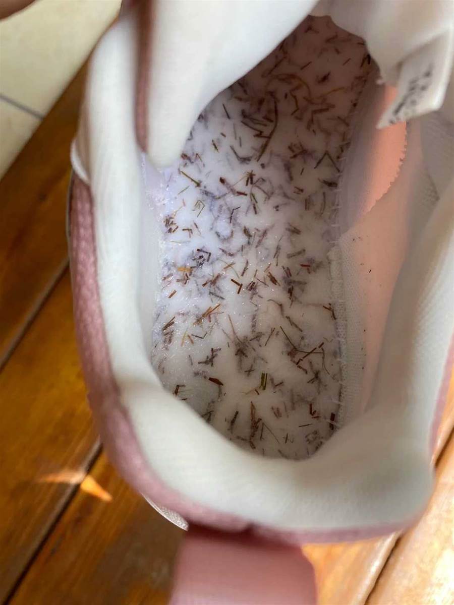 幾天後,徐女士決定給女兒的這雙新鞋做個清潔。當她把鞋子放在水裡準備仔細清洗時,突然發現鞋底有異樣。仔細一看,鞋墊下面竟然塞滿了細細的草根!她當時大吃一驚,不禁想:這到底是什麼奇怪的工藝?鞋子里面居然會夾雜這麼多雜草?她不由得感覺自己被商家欺騙了。