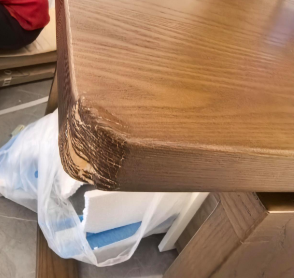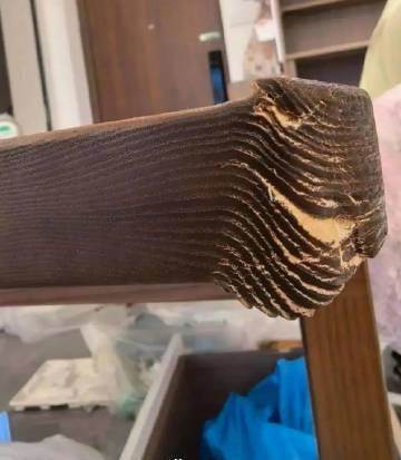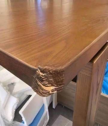 事情的起因很簡單。這張新買的餐桌在搬運過程中不小心磕壞了一個角,露出內部的紋理結構,令男子驚訝不已。他細細觀察后發現,桌面的紋路和側邊的紋理竟然對不上,甚至從破損處看起來更像是紙質層疊結構!一時間,他感到自己可能花了冤枉錢。
