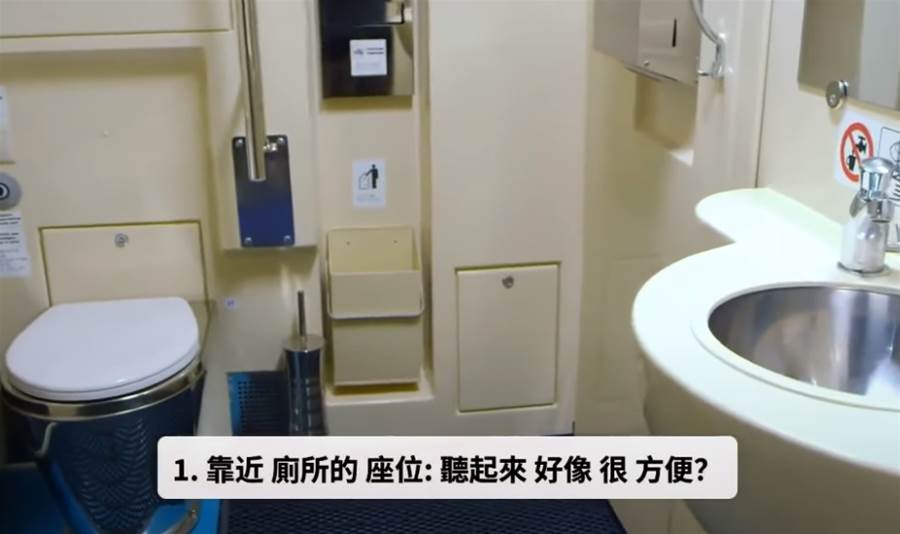1. 靠近廁所的座位 聽起來好像很方便?但其實這些位置有幾個大問題。 這個位置人來人往超吵,大家排隊上廁所就在你旁邊走來走去,加上常常有人站在你旁邊聊天、滑手機,根本無法好好休息。