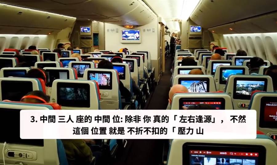3. 中間三人座的中間位 除非你真的「左右逢源」,不然這個位置就是不折不扣的「壓力山大位」。 這個位置兩邊都有人,你上下廁所要一直麻煩別人。 還有就是雙手不知道放哪,容易和隔壁人手肘大戰,毫無個人空間。