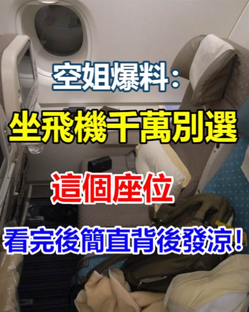 不少人訂機票時總是隨便選個座位,或者乾脆讓系統自動分配。 根據多位資深空姐爆料,有些機位不僅不舒服,還可能讓你整趟飛行都「痛苦指數爆表」,更別說是浪費了票錢,簡直就是花錢受苦! 如果不想因為座位問題讓你的行程受苦,建議大家看完這個視訊,或者動動你的小手,把這個視訊分享或保留起來,下次要看就容易找來看,以免找不到這個視訊而後悔。