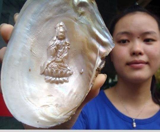回家後,女子就開始清洗扇貝,可是洗著洗著,女子驚訝的尖叫起來,原來那扇貝殼上有一個奇怪的東西,好幾個上面都有,仔細一看,扇貝殼上有個觀音的佛像,而且是栩栩如生。