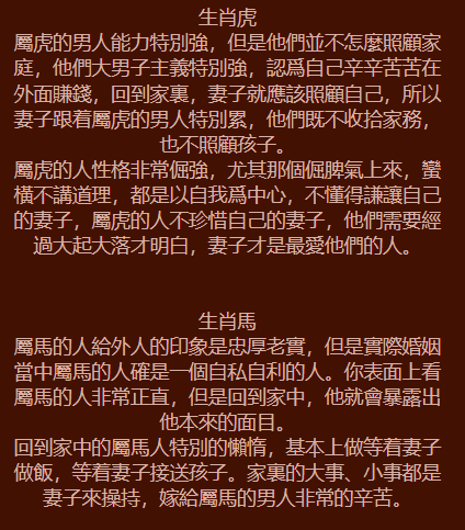 褐色是大多數人不太喜歡的安全牌,選擇褐色代表你的內在充滿平靜,且具有讓人安心的深情面。你對戀人或喜歡的人所懷有的秘密渴望是「接受你的所有」,想要有一個能給你所有愛與溫柔的伴侶,接納你的一切完美與不完美,通常會覺得有「年齡差距」的戀愛關係更適合自己。