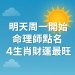 有4個生肖財運相當不錯,屬雞的朋友若是做業務性質的人會有老客人介紹新客戶,屬馬的人,工作上會被賦予重大任務。