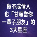 當你的情人,勢必會被你唸被你管,雖然她們經常有所埋怨,但久之,就會回頭知道你是為她好,雖然過程吃力不討好,但你總覺得對的事就是要堅持做。你的交友圈不大,但能夠被你認定就是一生一世的換帖黨。雖然你自覺是嚴以律己,但這類苦行僧行為,有時也會給朋友造成無形壓力,建議要適時調整放鬆一點。