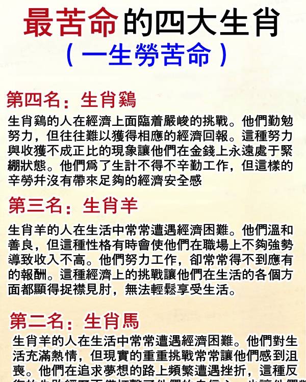 屬馬的人行動力強、理想遠大,但人生像不停奔跑的賽馬,總在趕目標、扛責任。他們往往扮演家庭或職場的「推進者」,但實際上壓力極大。最讓他們心累的,是努力了半天,別人卻未必看得見,甚至還會被誤會為太強勢或衝動。