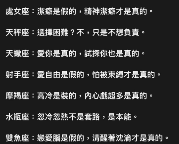 但其實這些星座男的形象全都是精心設計出來的假象,