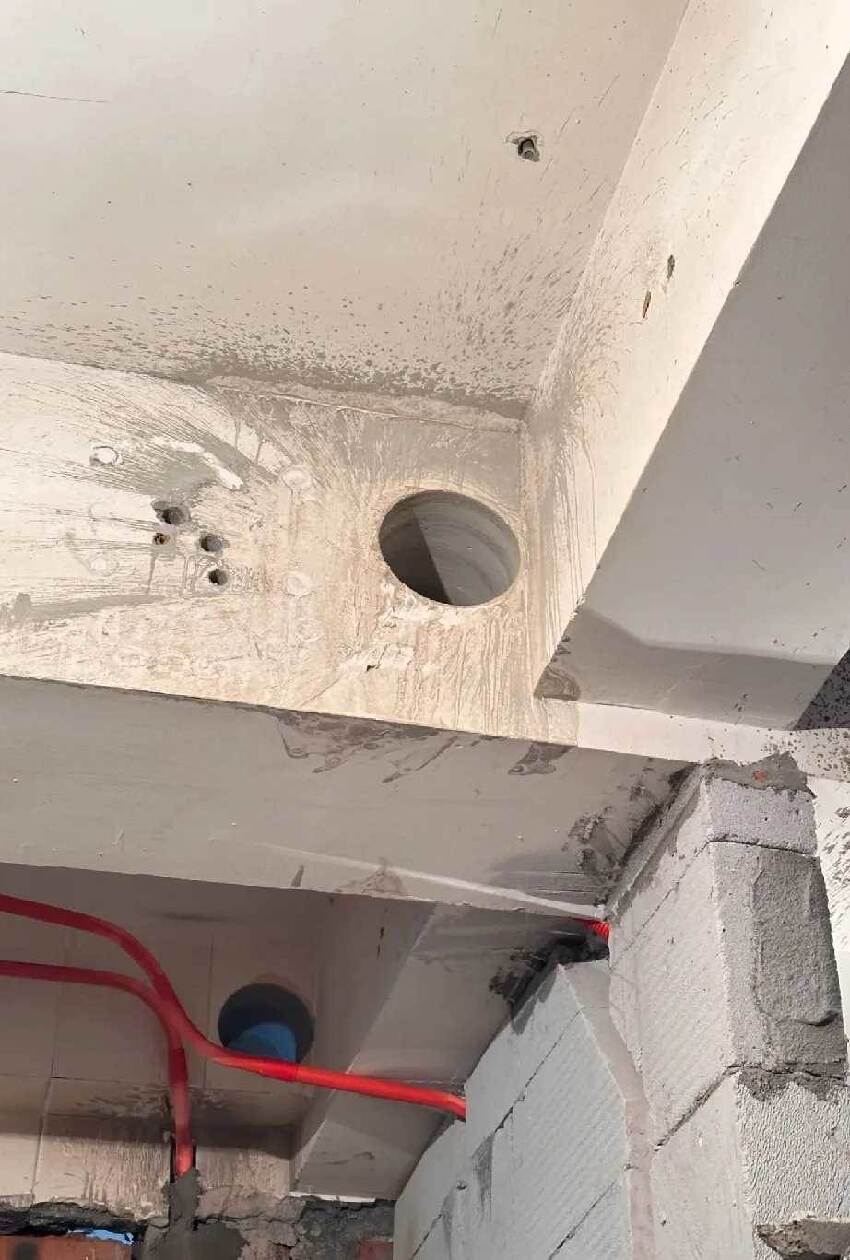 還有不少網友說:「一般開個小洞,避開鋼筋,穿水管電線沒事,這麼大的就危險了」,「橫梁開洞影響受力平衡,易引發安全隱患,必然危及樓體。 開孔位置是在次梁的位置,影響較大。」