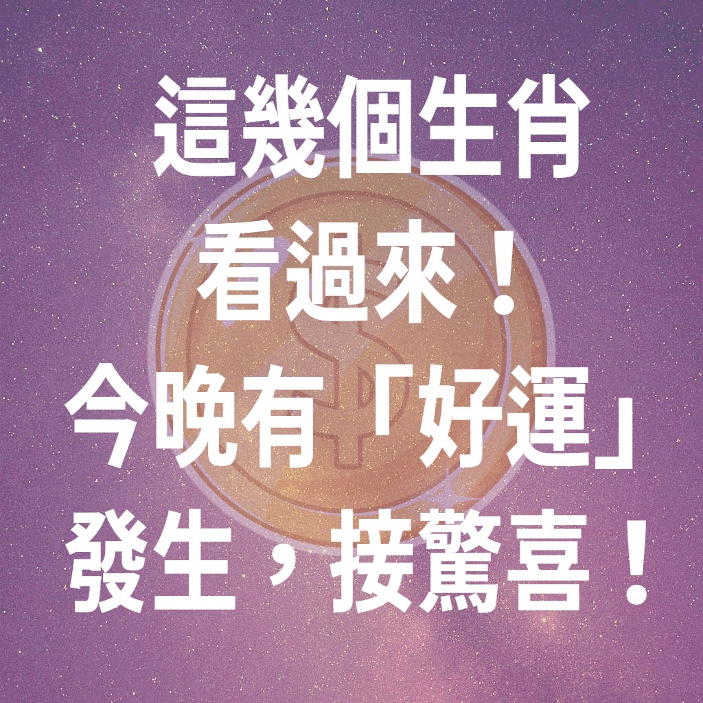 夜幕即將降臨,但對於某些生肖來說,今晚的星象特別閃耀,預示著一波「好運」即將發生!這不是一般的運氣,而是可能帶來意想不到的驚喜和轉機。無論是人際關係、心情轉變,還是小小的意外收穫,都可能在今晚悄悄降臨。快來看看,今晚的好運是否會降臨在你身上!