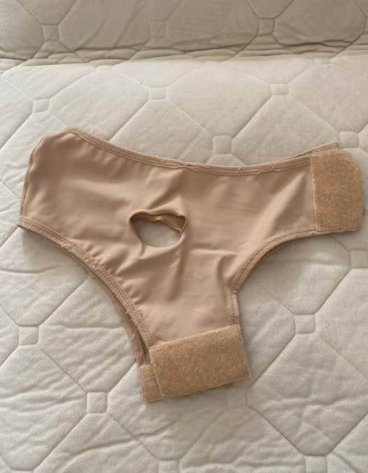 這張照片看似一塊奇怪的布條,膚色且中間開了一個洞,讓人一看便聯想到破洞的內褲。