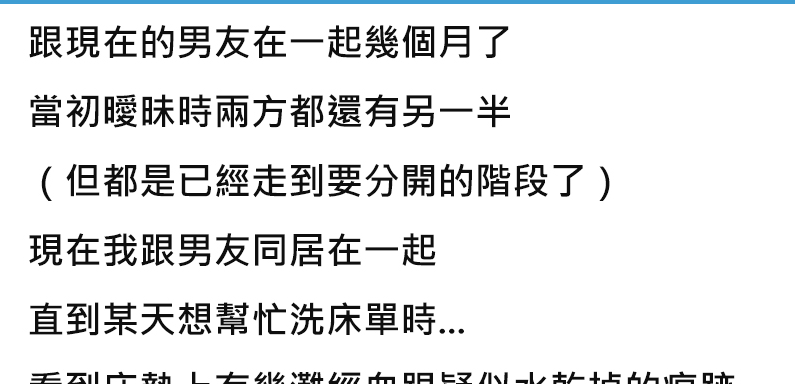 「過去的就讓他過去吧 不然妳下一任找沒交過的啊 把床單換一個新的就解決了」