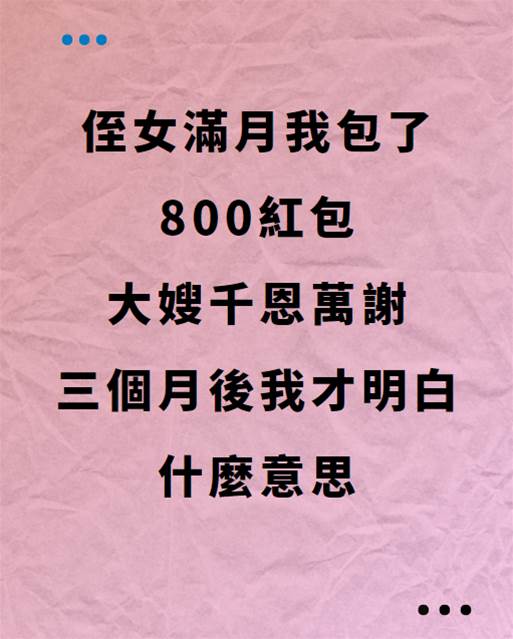 難怪上次去參加小侄女的滿月酒,大嫂對我一直說感謝,我現在才懂原來是為了「那十萬」……