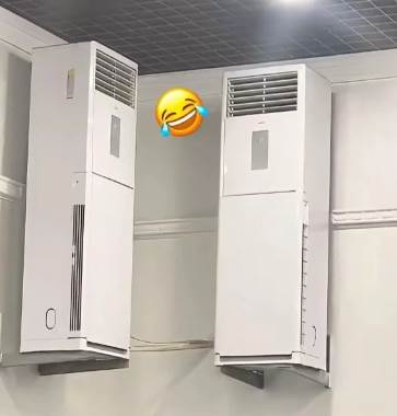 剛刷到一張圖,真讓我懷疑物理定律——兩台北斗神「柜」般的立式空調,居然像壁畫一樣被「掛」在了墻上?!(๑•̀ㅂ•́)و✧
