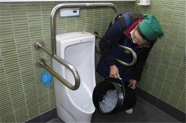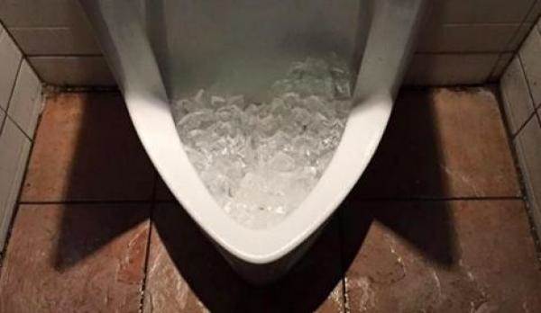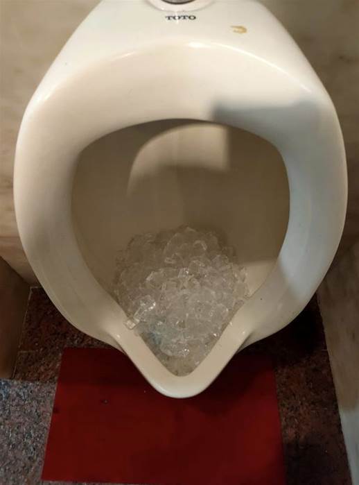 除了定期清理廁所很重要以外,在小便斗上放上一堆的冰塊也能達到幫助,