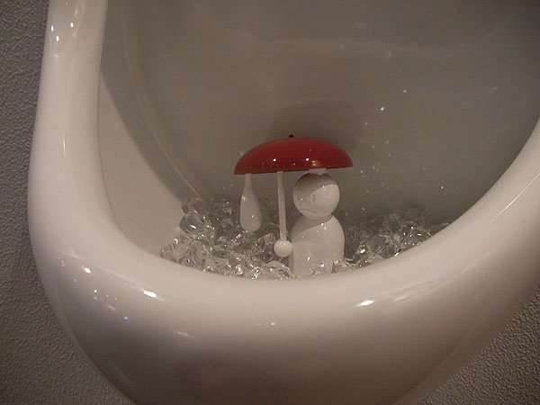 4、小便斗有了冰塊當作目標,可讓解放的男士們瞄準,進而不會有不經心地亂抖、亂灑尿不準的事情發生,讓清潔阿姨不用再相當費心的刷洗地板、小便斗。