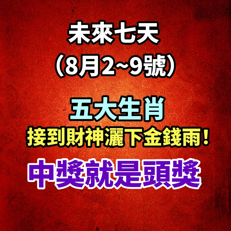 未來七天(8月2~9號)接到財神灑下金錢雨!中獎的生肖