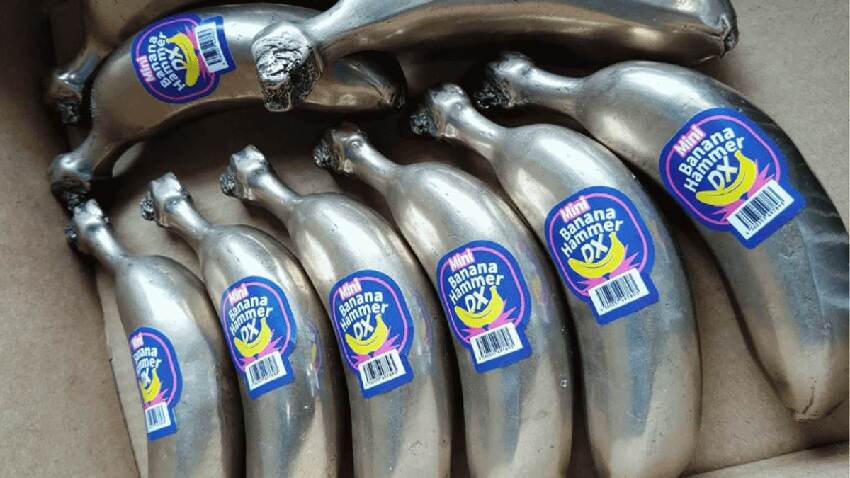 對於「鋼鐵香蕉」的用法,IRON FACTORY IKEDA表示,這個產品其實是ㄧ把鐵鎚,長20公分、重達1.5公斤,研發、製造鋼鐵香蕉,最初是為了滿足大眾想用水果來敲打釘子的想法。