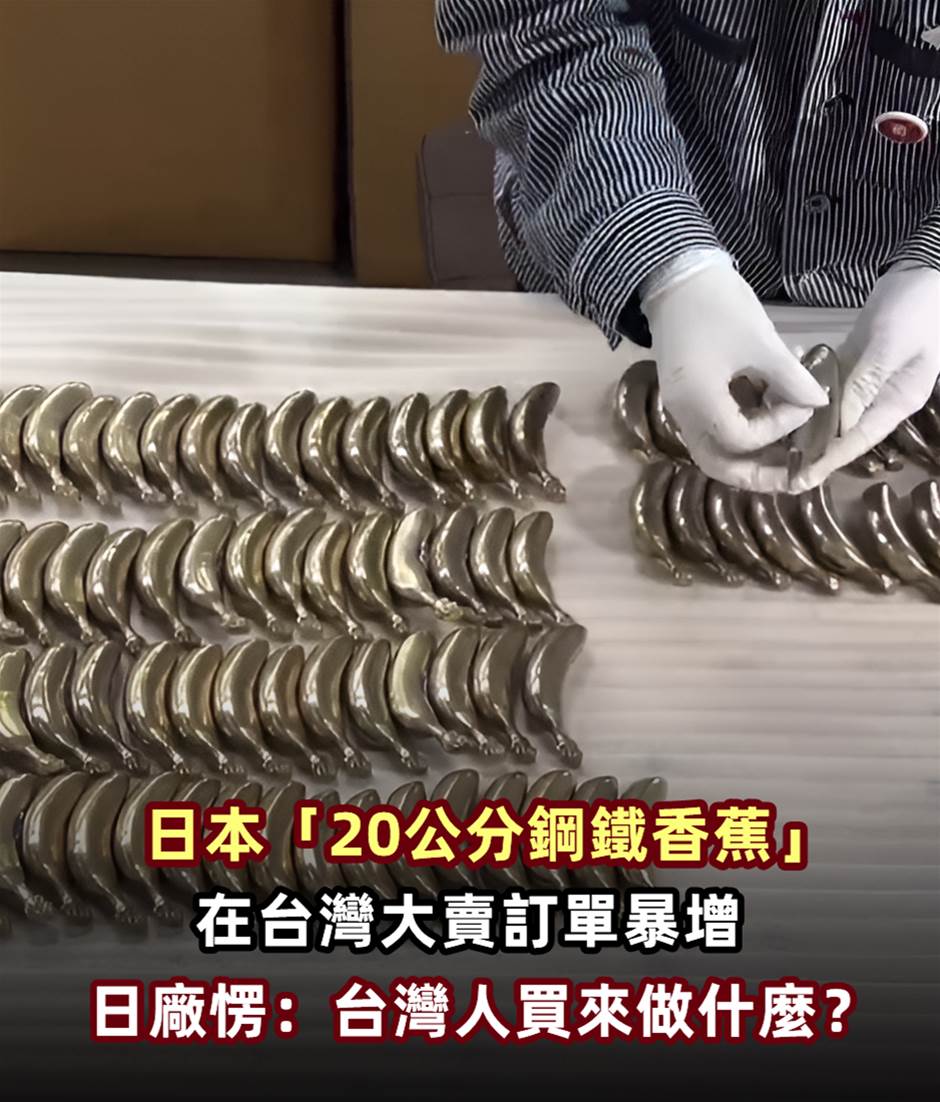 而多家日媒也指出,鋼鐵香蕉不知為何在台灣爆紅、人氣飆升,目前製造商正急忙趕工、生產出貨。 「IRON FACTORY IKEDA」相當好奇訂購產品的台灣民眾想把鋼鐵香蕉用來做什麼。