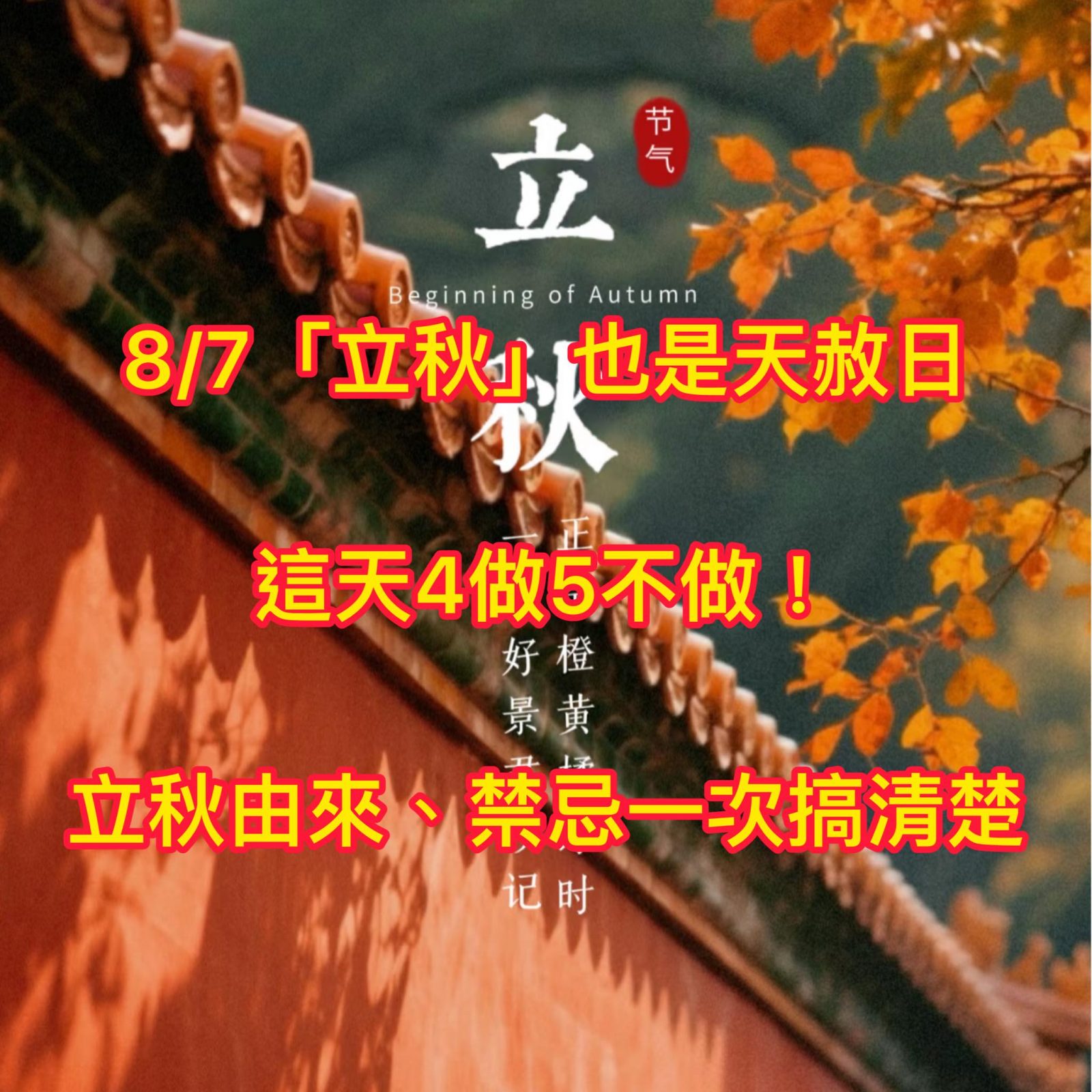 📅2025年8月7日|立秋 × 天赦日 雙能量重疊!