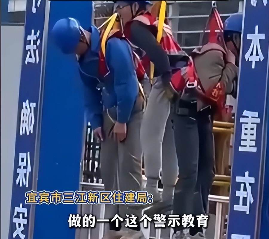 宜賓市三江住建局也回應了為什麼把工人吊在門口。