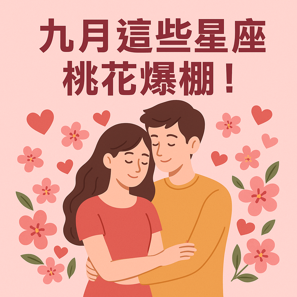 九月是桃花運高峰期,天秤、獅子與雙子座魅力與人緣值爆棚,單身的你脫單機率大幅提升。把握社交機會、保持真誠與自信,無論線上互動或現實約會,都有可能遇到心動對象。即使桃花能量旺,也需謹慎選擇,讓幸福的愛情落實到長久穩定的關係中。