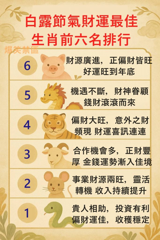 白露節氣的到來,不僅預示著秋意漸濃,更是許多生肖財運的轉捩點。以下是9月中旬財運最為亨通的六位生肖,看看誰能被財神爺眷顧,財源滾滾、好運連連!