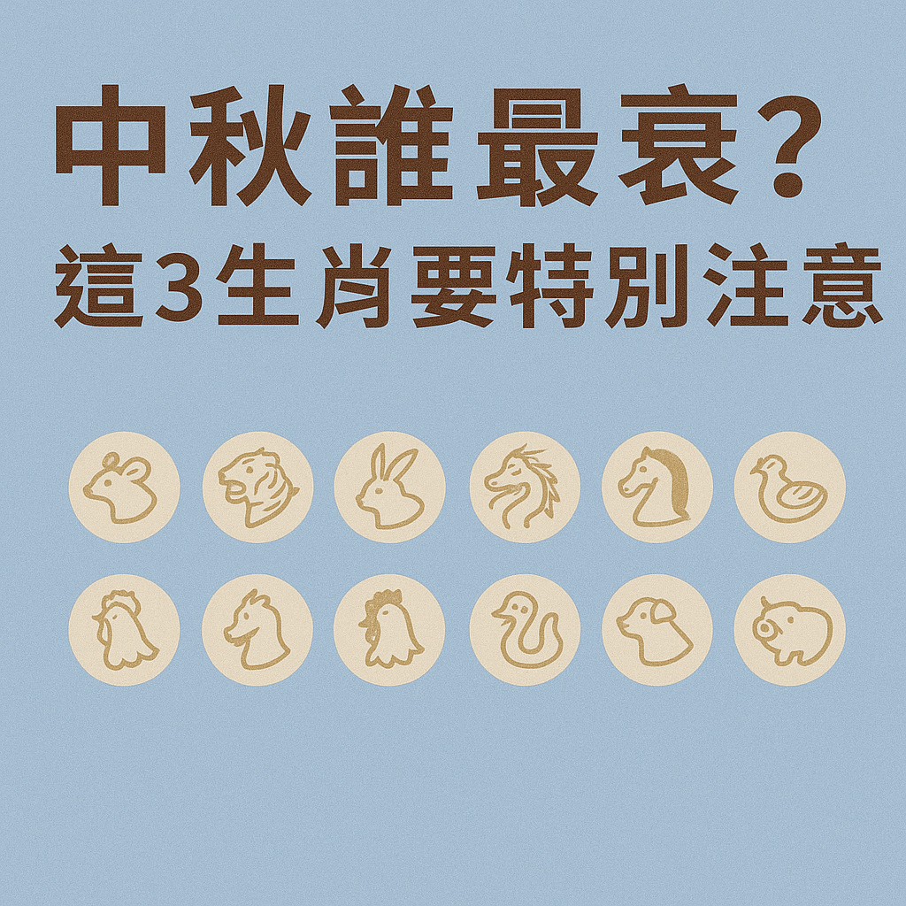 中秋佳節,人人都想團圓、開心,但有些生肖在這段時間容易遇到小插曲,心情不免受影響。別擔心,這不是大劫,只是提醒你 多注意細節、保持正能量,就能平安過節。快來看看有沒有你的生肖!