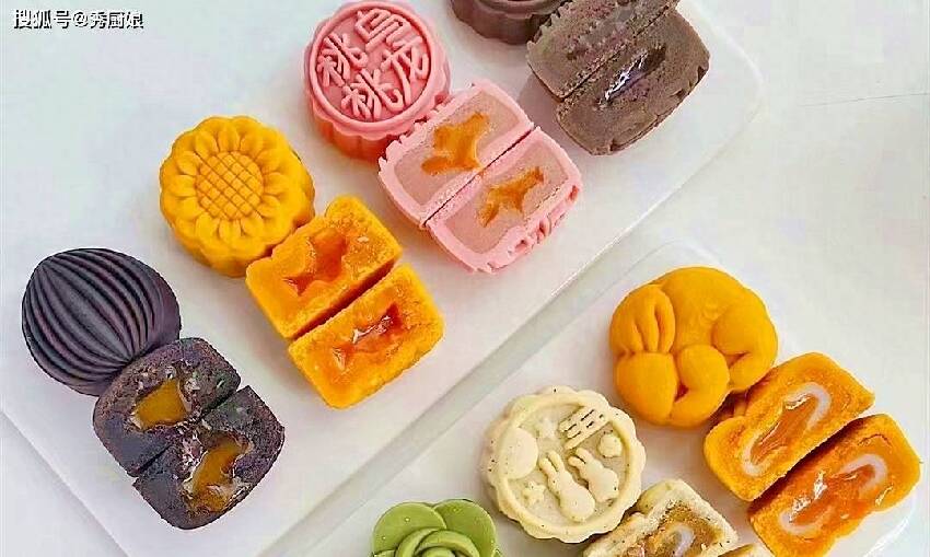 現在月餅顏色、形狀五花八門,紅的、綠的、紫的,這些色彩斑斕的月餅通常添加了大量的食用色素,使月餅看起來五彩繽紛。