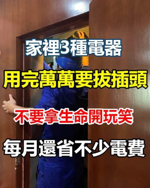 現代家庭裡,各式各樣的電器已成為生活必需品,但你知道嗎?有些電器即使「關掉電源」,插頭不拔掉,依然在偷偷耗電,甚至可能存在安全隱患。專家提醒:家裡有 3種電器,用完後一定要拔插頭,不僅能避免危險,還能每月省下一筆電費!