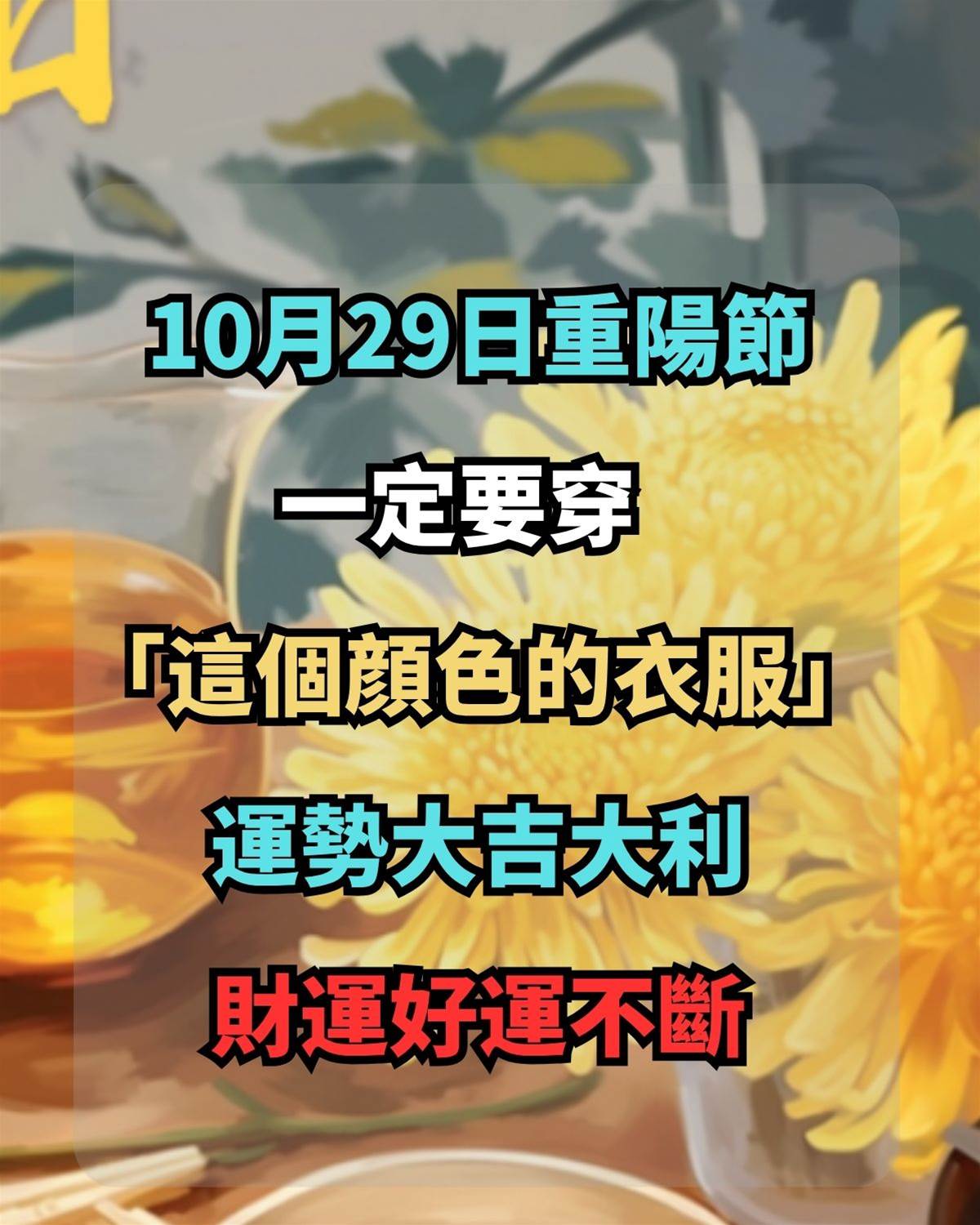 💫 10月29日重陽節,一定要穿這個顏色!運勢大吉大利,財運好運不斷💰