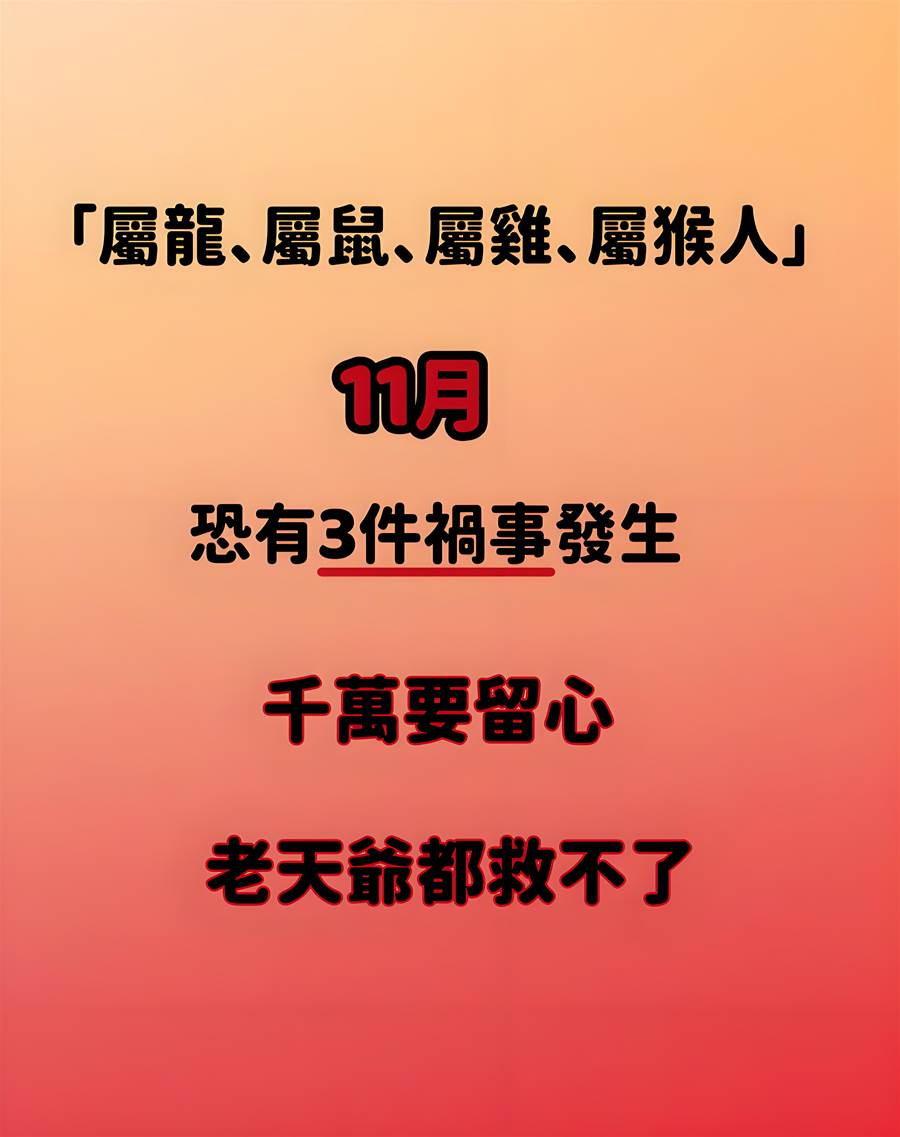 屬龍、屬鼠、屬雞、屬猴的人注意!11月恐有3大禍事降臨,千萬別大意