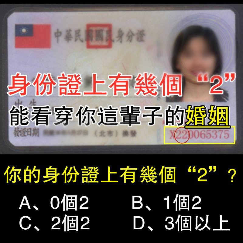 有人說,身分證上的數字藏著命運的密碼,特別是數字「2」,與「情感與婚姻」息息相關。它象徵柔和、包容、依附與情緒起伏。若你仔細數一數自己身分證號裡出現幾個「2」,或許就能看出你這一生的婚姻走向、感情態度與相處模式。