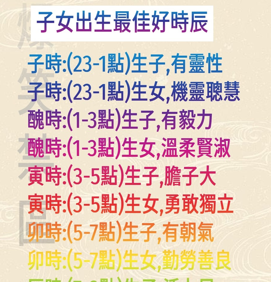 11、第十一:亥時(晚21-23點),生子, 有福氣。一天之末,福澤深厚。