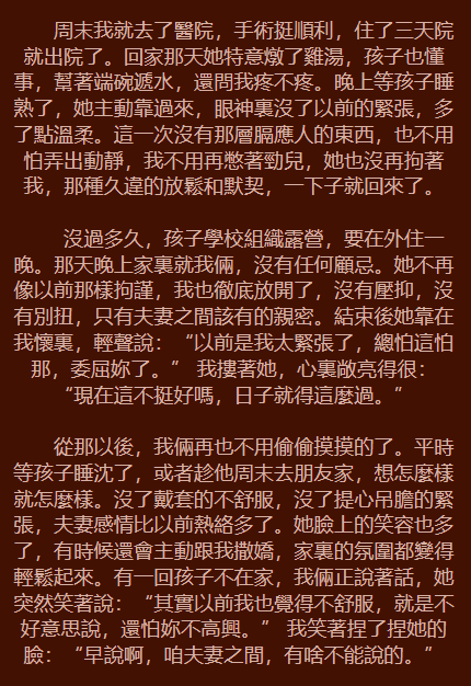 c:測出你和另一半年紀是同年齡,你們倆是高校的同學們,你們倆在高校就逐漸相知相戀了,因此你們倆畢業後以後,就踏入了婚姻生活的聖殿了,因此你們兩個是同年紀的,而完婚以後的你,你挑選做一個家庭婦女,過著相夫孝子賢孫的生活。