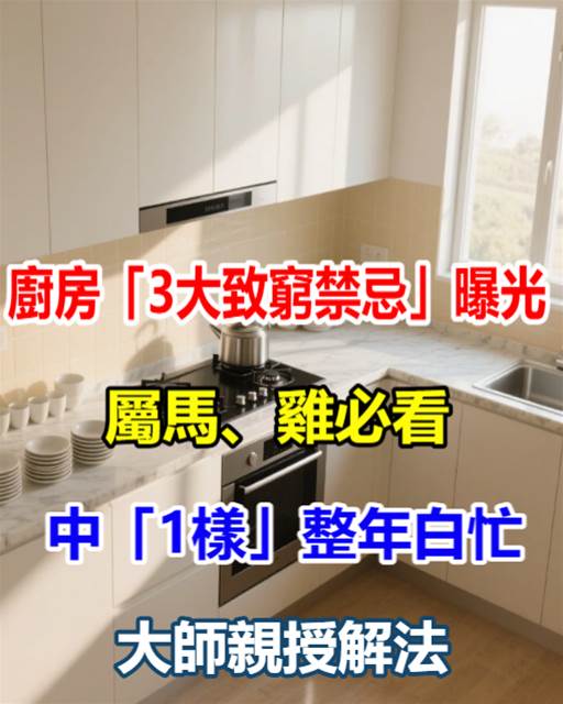 廚房是家中財氣與陽氣的源頭,被視為「掌管一家人運勢與健康」的重要空間。風水老師指出,若廚房的格局或擺設出現錯誤,輕則漏財、重則破運,尤其是屬馬與屬雞的人更要特別注意。今年若中了一項禁忌,恐怕整年忙得團團轉,卻難見收穫。