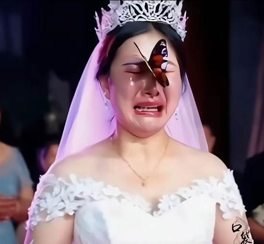 剛才還在一直笑著的新娘瞬間淚崩,嘴角不停地抽動,在這個場合她強忍著淚水,不讓自己哭出聲。不停的左右看著在自己面前飛來飛去的胡蝶,她心理在默默的念叨著,爸爸真的來看我了,知道我今天結婚。站在一旁的新郎也是默默的看著這蝴蝶,不敢去驅趕,此時此刻他懂得新娘在想什麼。