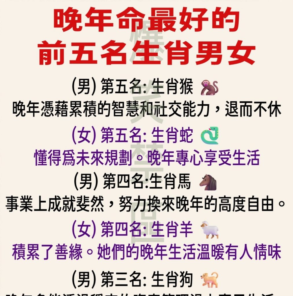 👨🦰 晚年命最好的 5 個生肖男