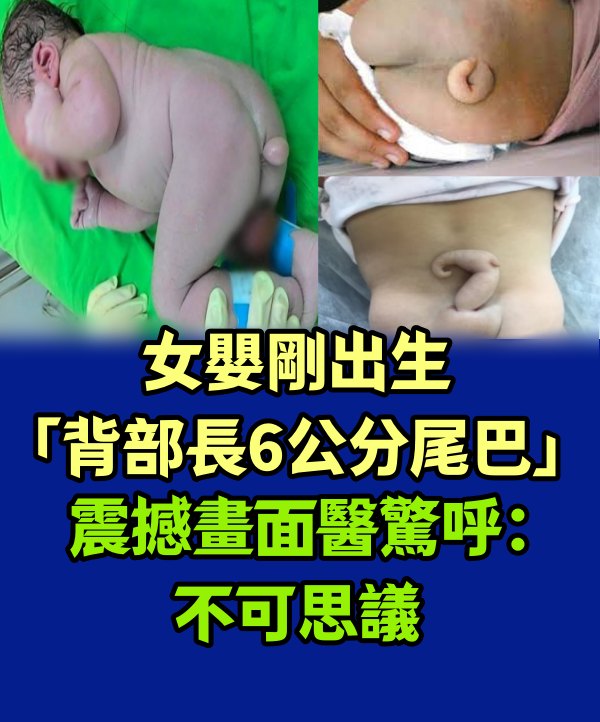 據悉,通常人類的「尾巴」胚胎發育中,都會被吸收回體內形成尾骨,在極少數狀況才會變成「尾巴」,這在嬰兒出生後才會被發現,直到今日,醫師也不確定形成的真正原因為何。