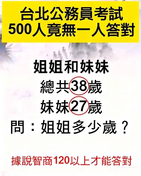 ➡️ 所以「妹妹 27 歲、姐姐 11 歲」在題目邏輯上 完全成立。