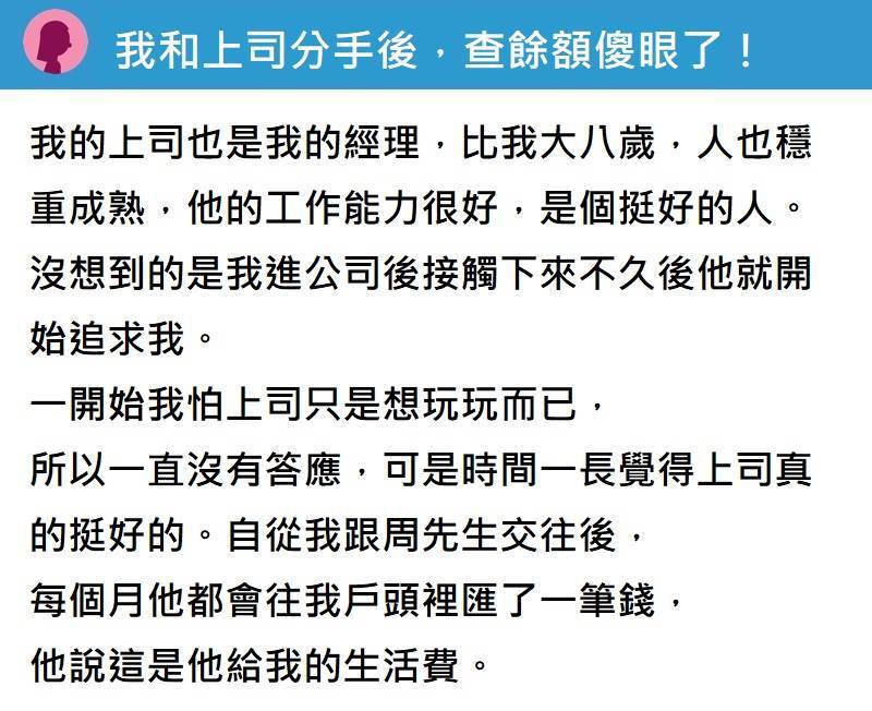 所以一直沒有答應,可是時間一長覺得上司真的挺好的。