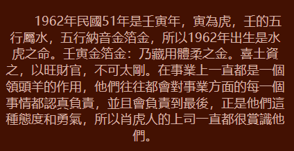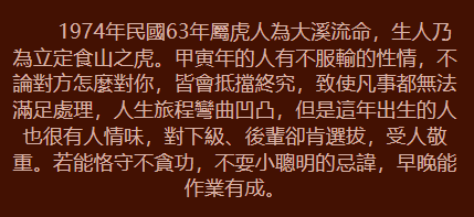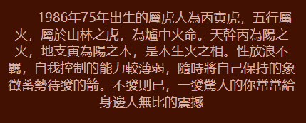 你總是在尋找真愛,在沒有婚姻之前你渴望自由,你不喜歡按部就班的上班下班。你非常有能力,懂得透過自己的努力賺錢,你把大部分的錢都花在自己喜歡的旅遊丶走遍世界各地。最初你的心思並沒有放在愛情和婚姻上,現在到了適婚年齡,卻發現自己並沒真正喜歡的異性。可是你是個幸運的女孩,你總是能得到別人的欣賞,很快你就會在生活中遇到那個可以與你共度一生的人。你已經度過了幾年自由自在的生活,你並非一無所獲,相反你閱歷豐富,能力突出,相信自己能夠戰勝一切的困難。婚後你會是個好妻子,好母親,你未來的婚姻生活會過的舒適安逸!