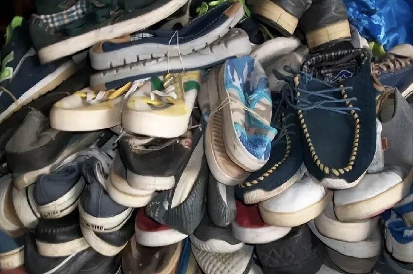 舊鞋子經過長時間的使用,鞋底有了一定的磨損。