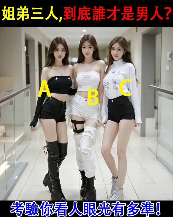 B 站在中間、氣場最強,比例突出、姿態自信,
