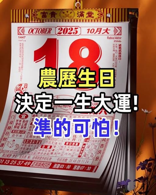 很多人都說,命運早在出生那一刻就悄悄寫好了,而農曆生日,更像是一把打開人生劇本的鑰匙。最近這張寫著「農曆生日決定一生大運,準的可怕!」的圖片在網路上瘋傳,不少人看完後直呼對照自己的人生經歷,竟然意外貼切。