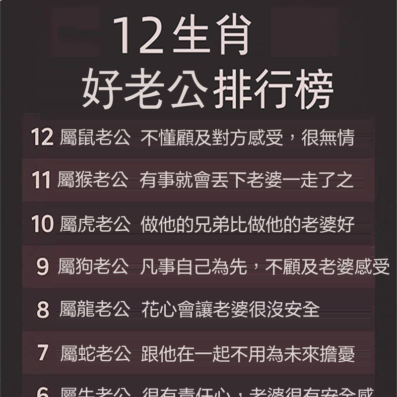 很多人都說,結婚後才是真正考驗感情的開始。到底誰是顧家好老公?誰又容易讓老婆心累?從十二生肖的性格特質來看,其實差很大!一起來看看這份網友熱議的「好老公排行榜」👇