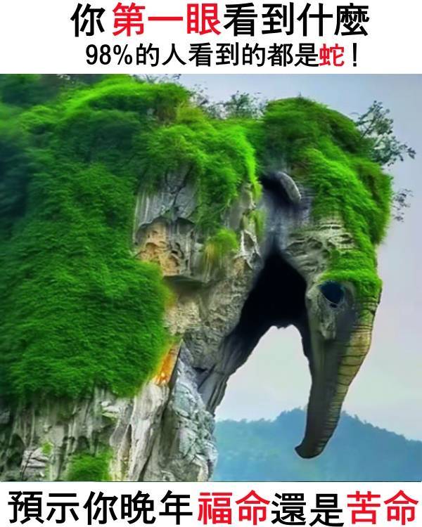 大象:如果你第一眼看到的是一頭大象(岩石的形狀構成象頭,垂下的部分是象鼻),這通常象徵著「穩重」與「吉祥」。在傳統文化中,象與「祥」同音,代表晚年運勢平穩、有靠山。